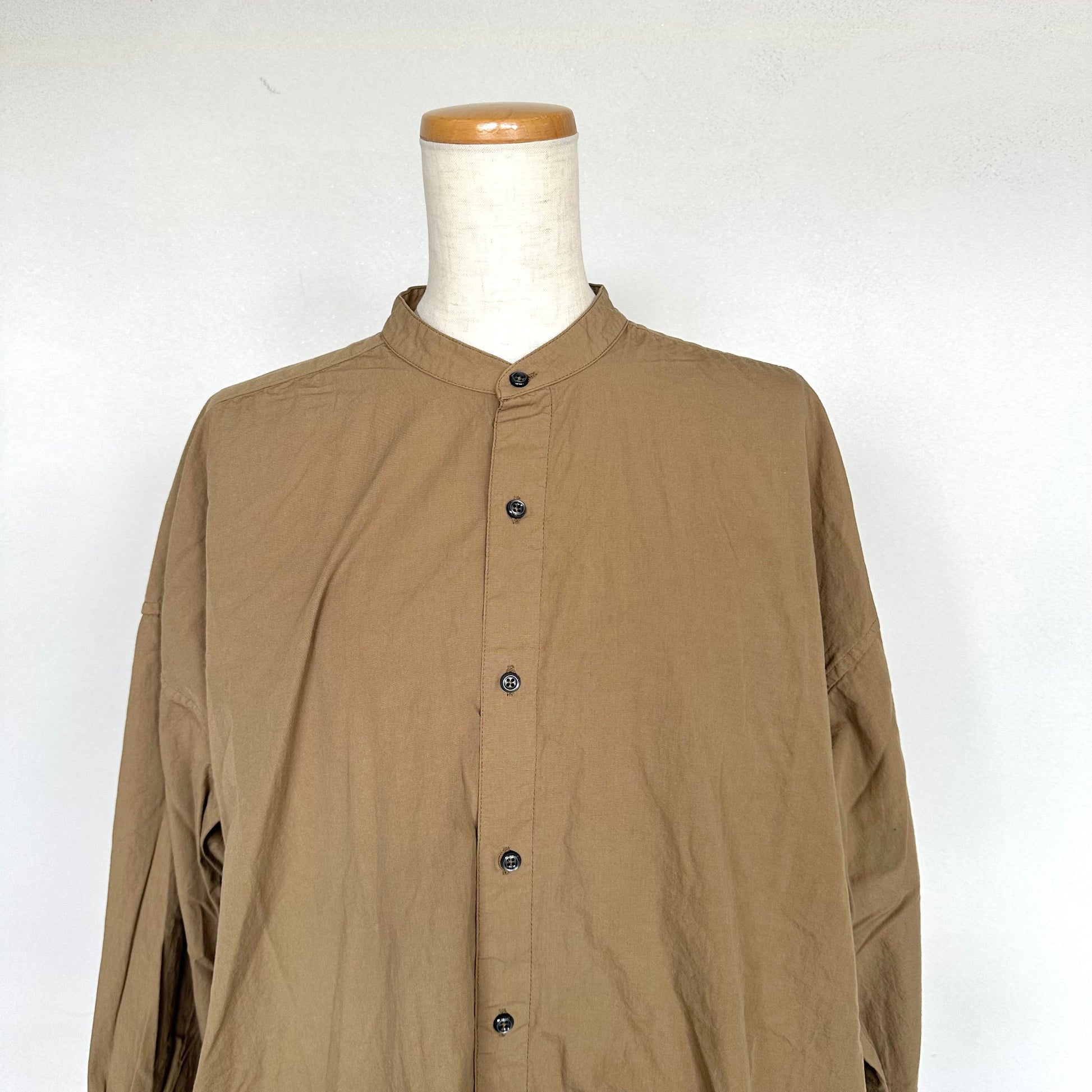 お店でも人気のバンドカラーロングシャツが入荷しました。