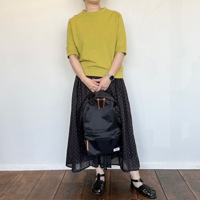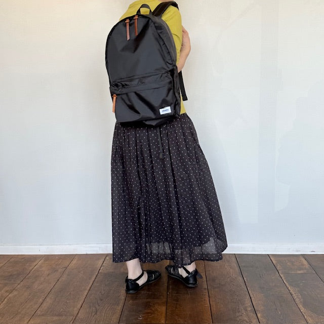 スエードのレザーパッチ、ストラップ部分もS字になっており、シンプルながらもとても軽く実用性の高いリュックです。