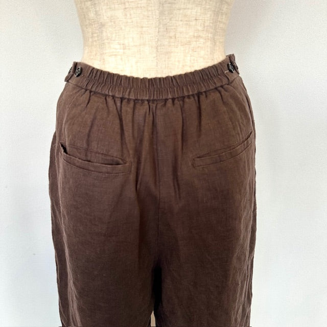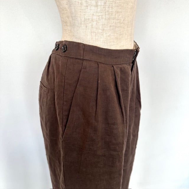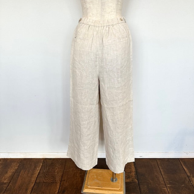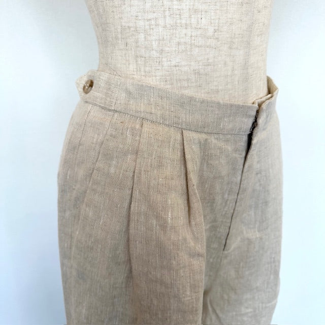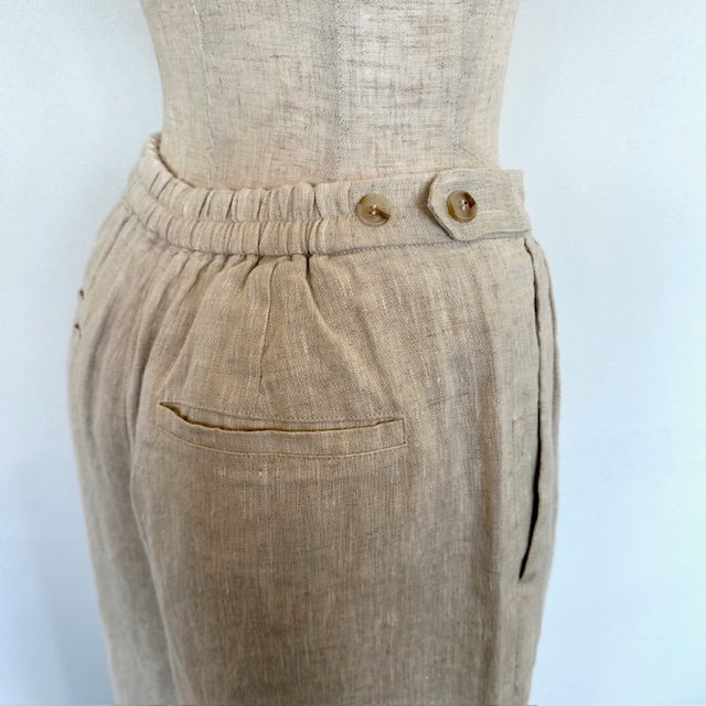 クラシカルな風合いが魅力のリネンハイウエストパンツ。