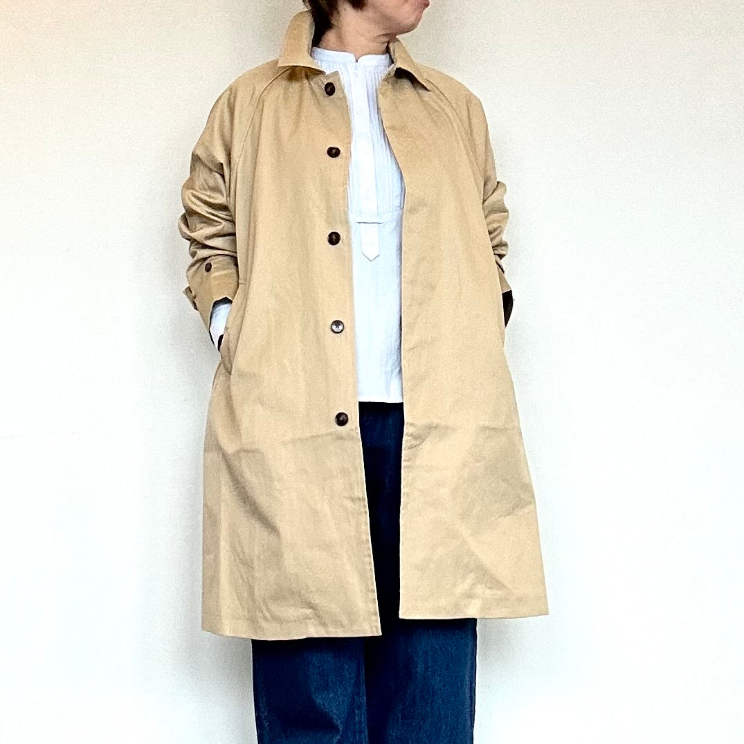 ほんのりと光沢感のあるバルカラーコート。