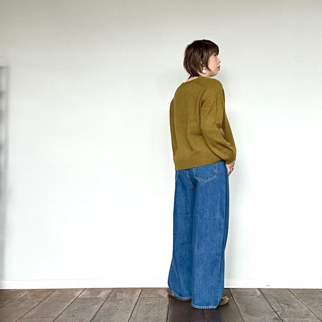 ハイウエストでウエスト周りはスッキリと、ヒップわたりはゆったりとした、ヒップラインを拾わないシルエットになっています。