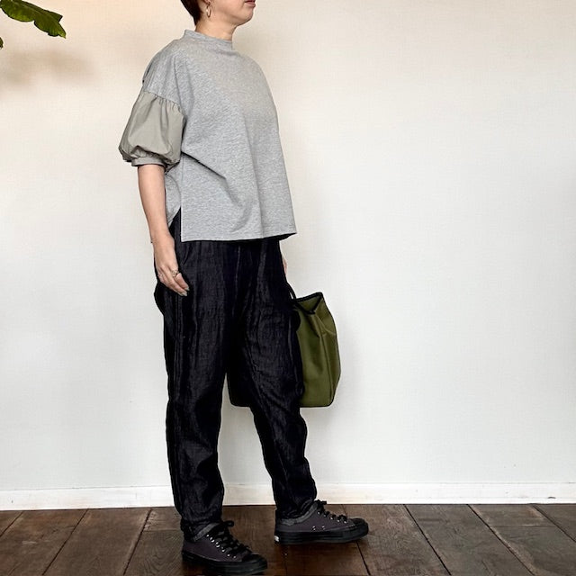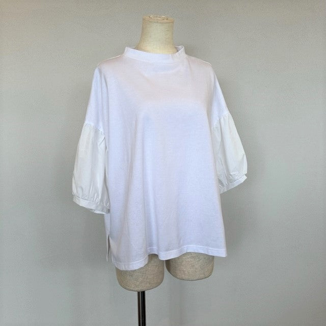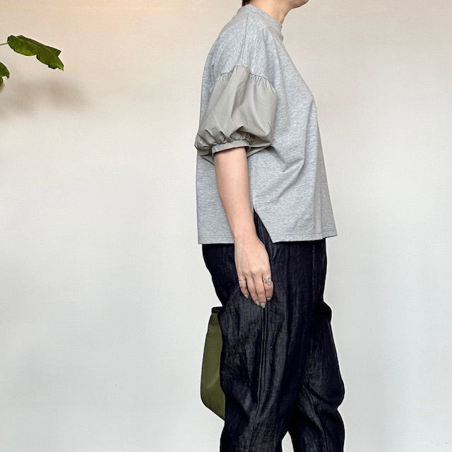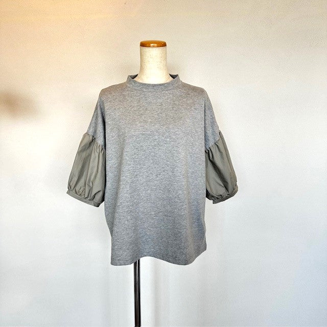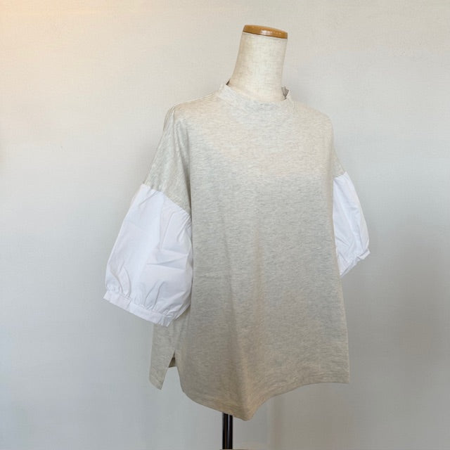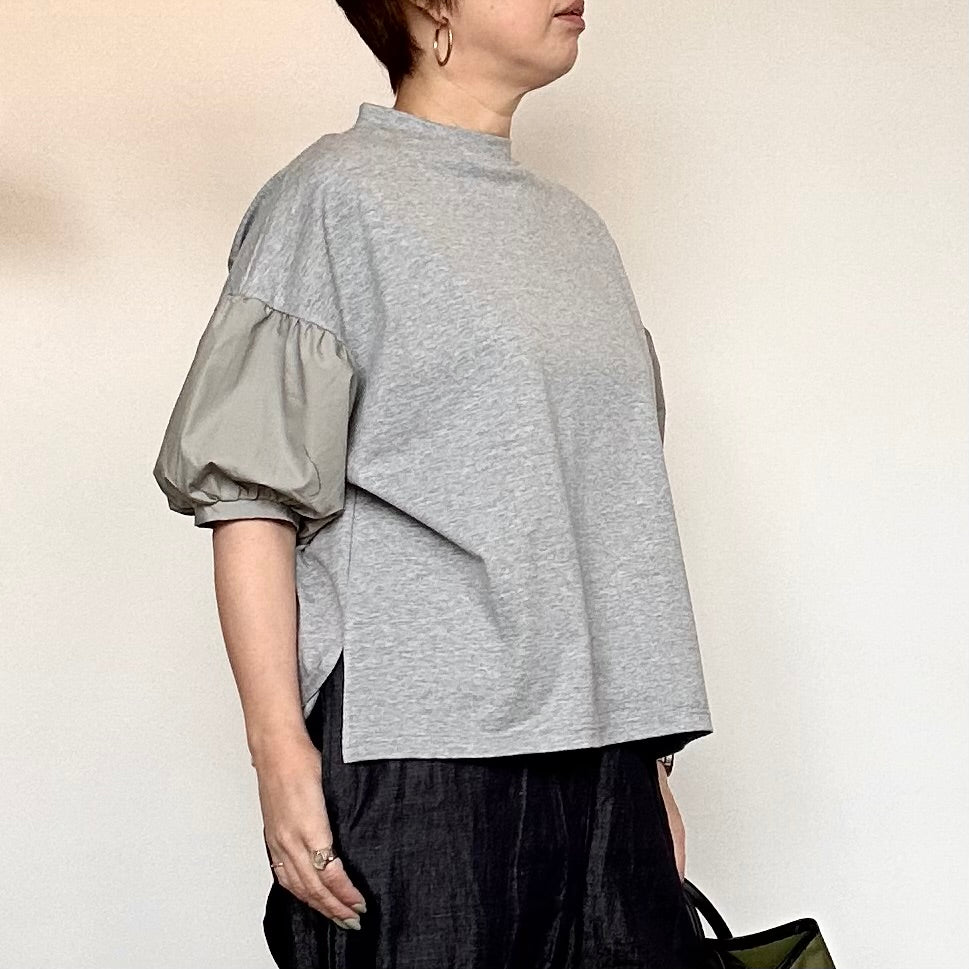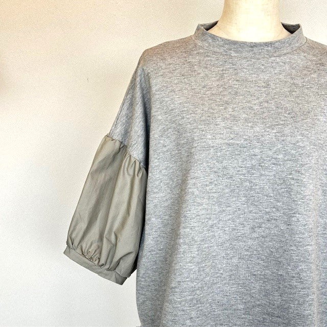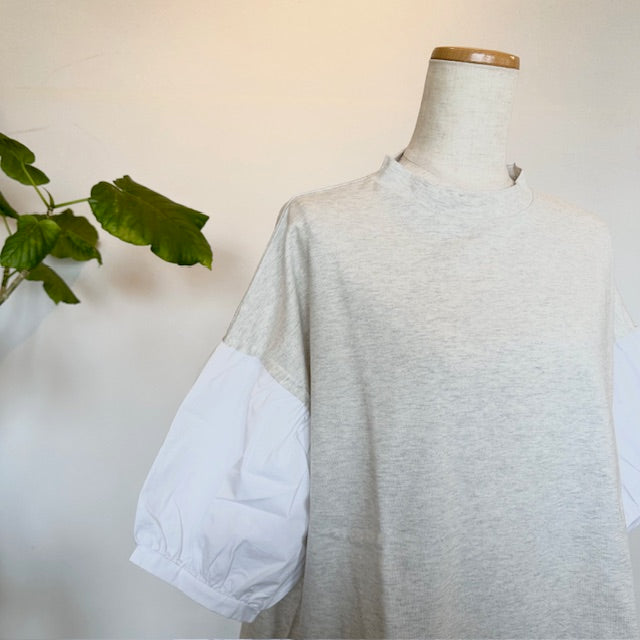 カットソー生地をベースに、コットンブロードの布帛素材を使用したお袖が合わさった