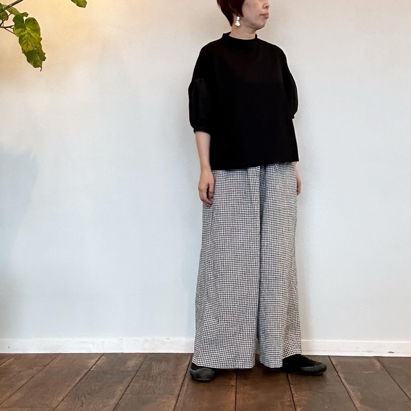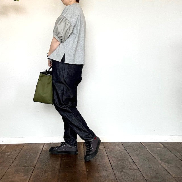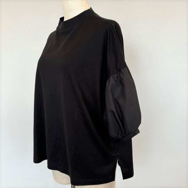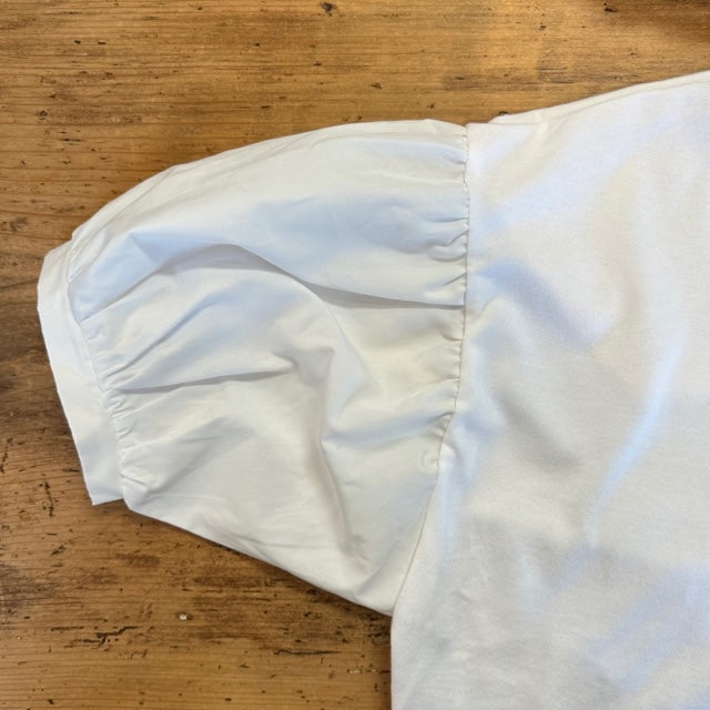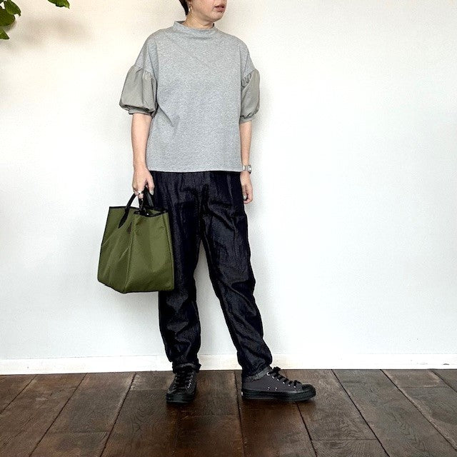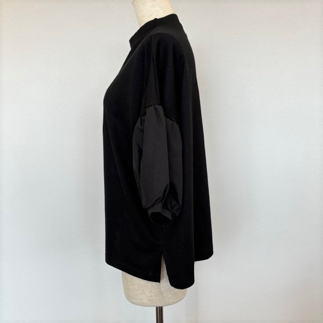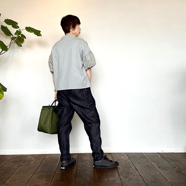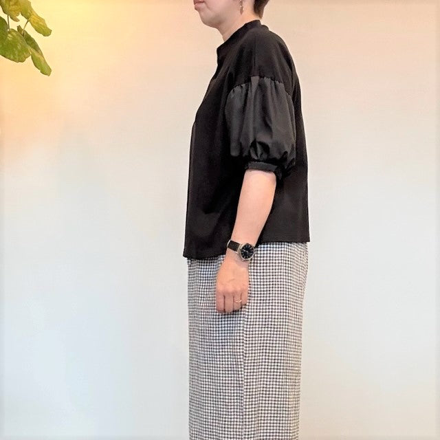 カットソー生地をベースに、コットンブロードの布帛素材を使用したお袖が合わさった