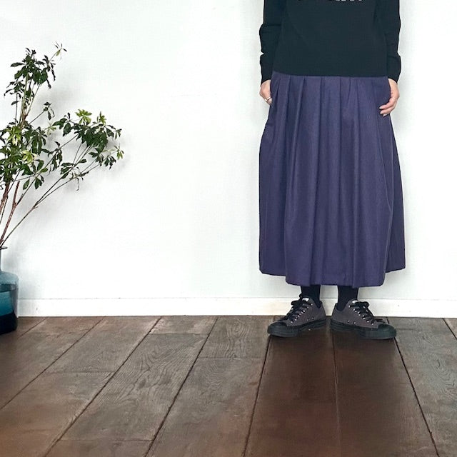 ina ウエスト紐付きウールタックスカート(無地) 244124