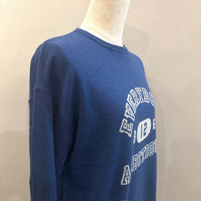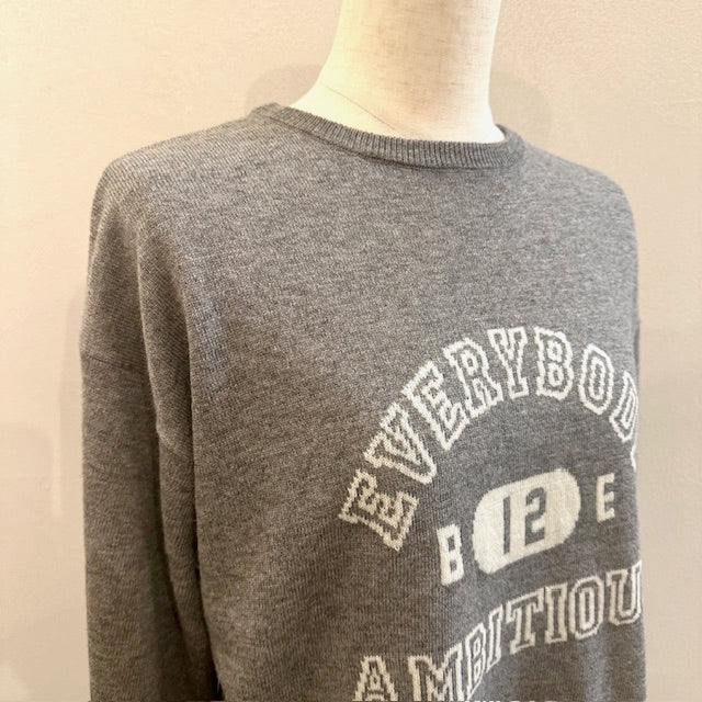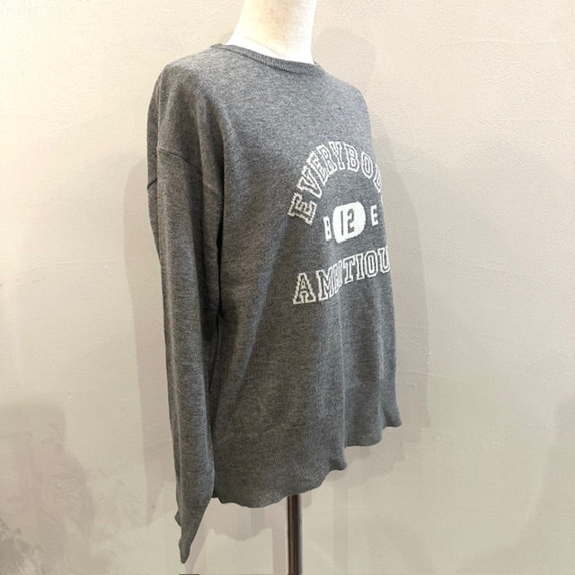 あえてのハイゲージニットにカレッジロゴも素敵です。