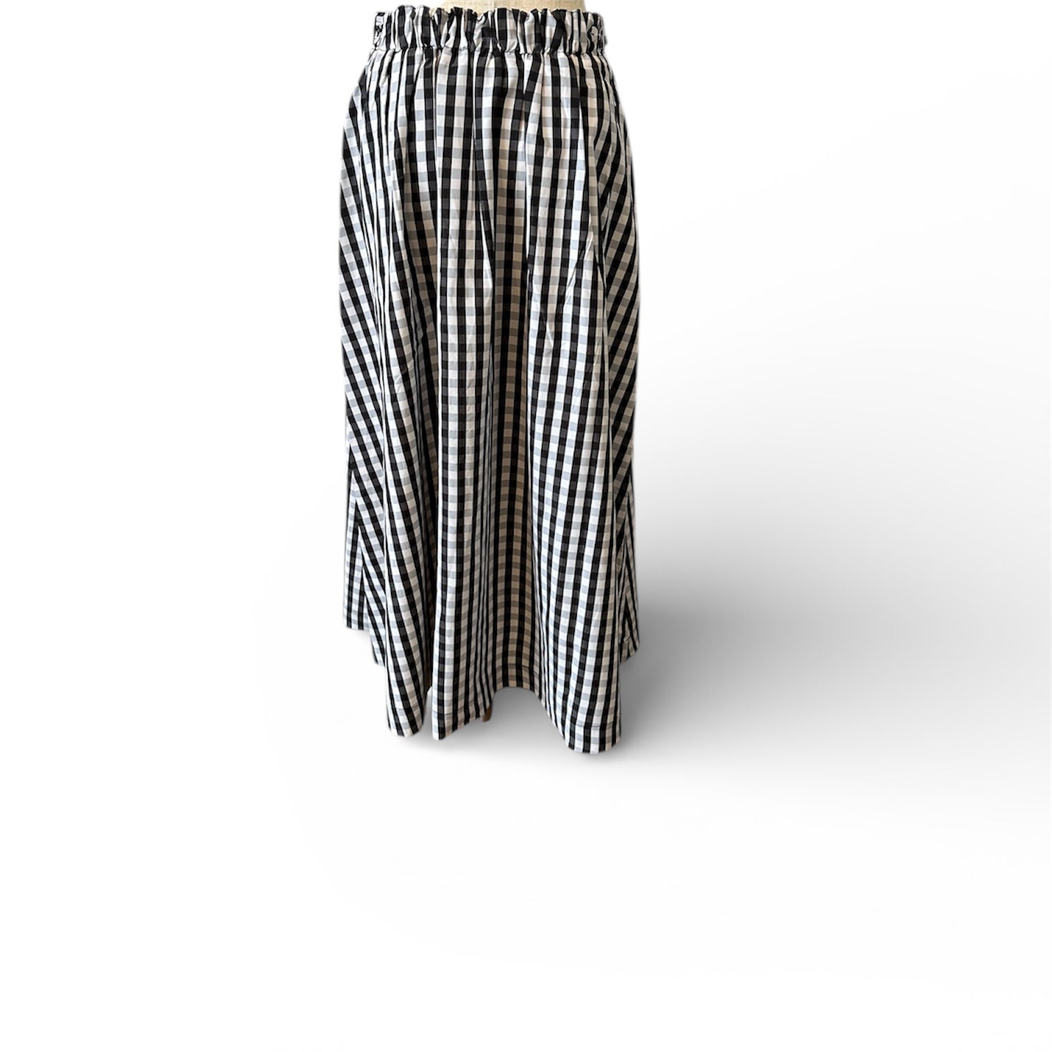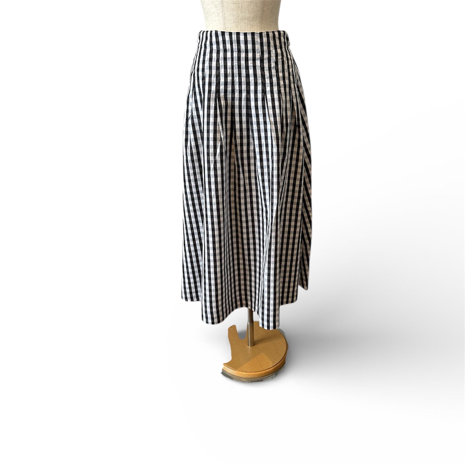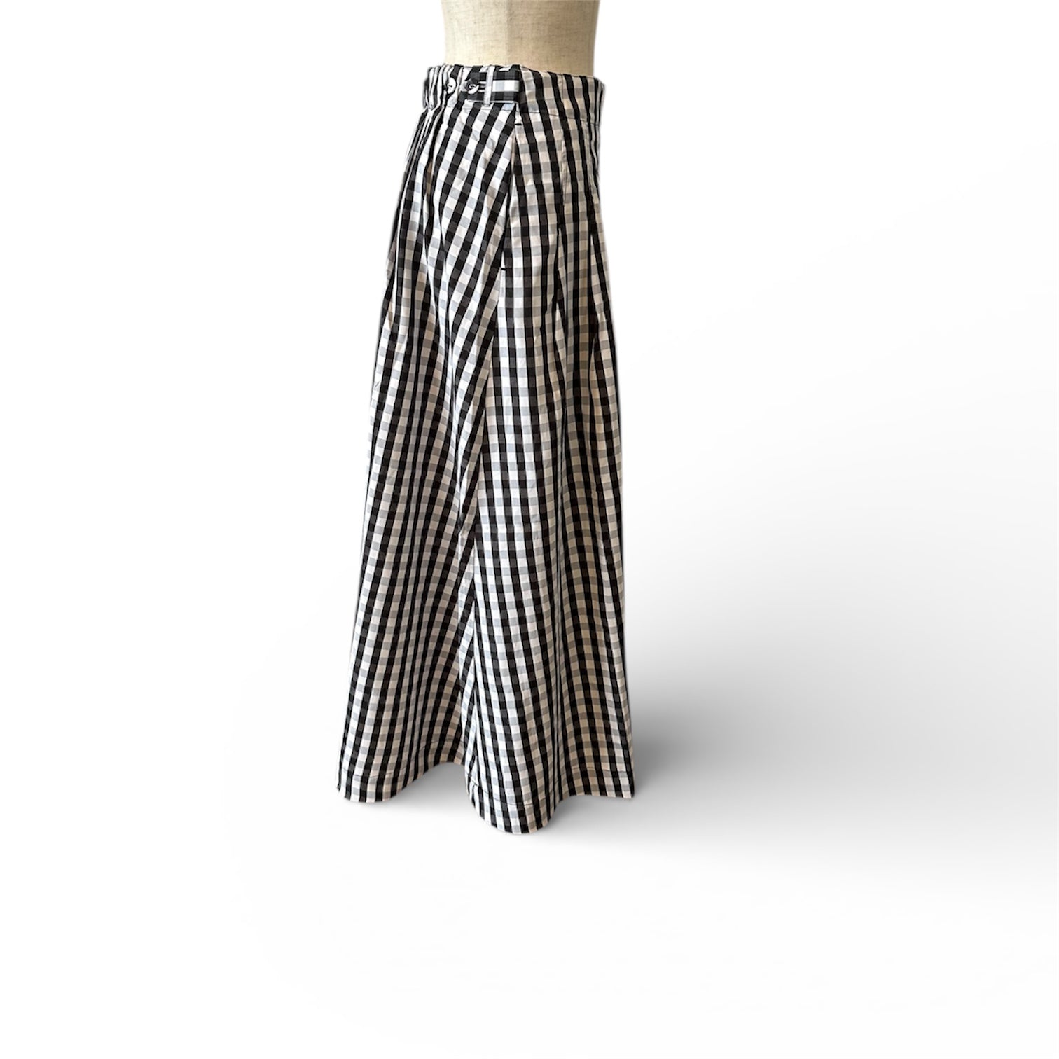 ウエストタックの縫込み分量を調整し、ちょうど良いボリュームとフレア感を演出しています。