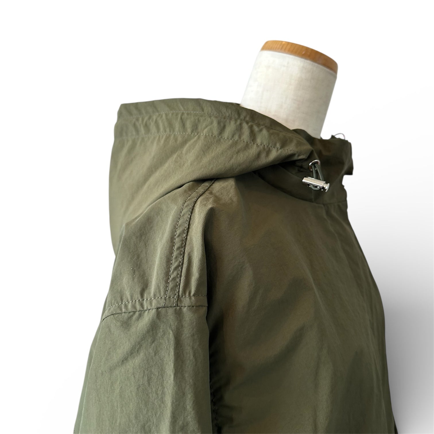フードは取り外し可能で、ギャザーを寄せればアクセントに。