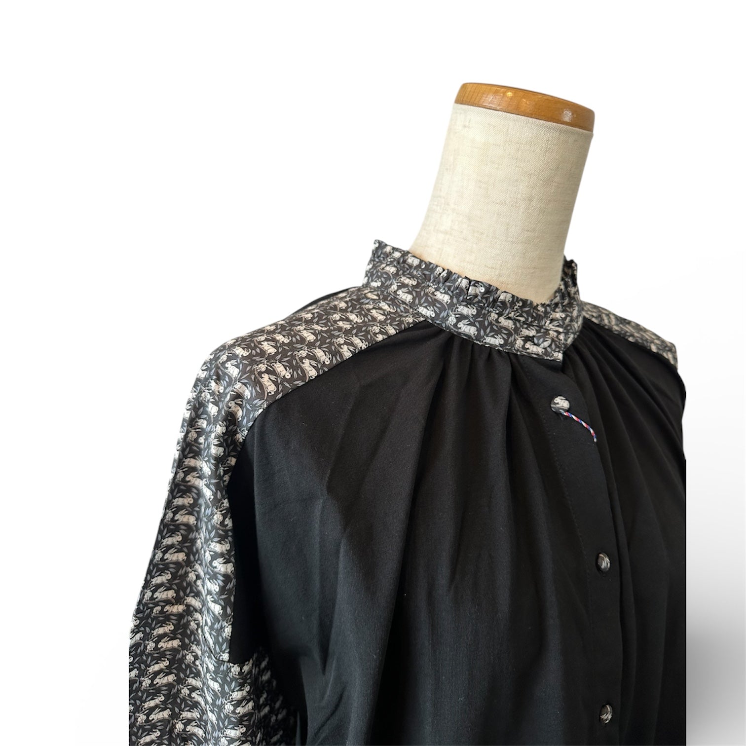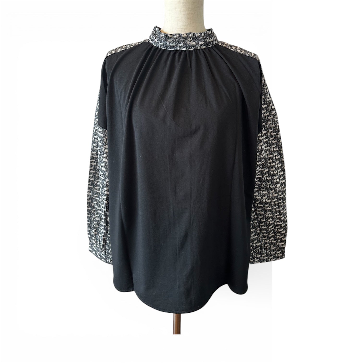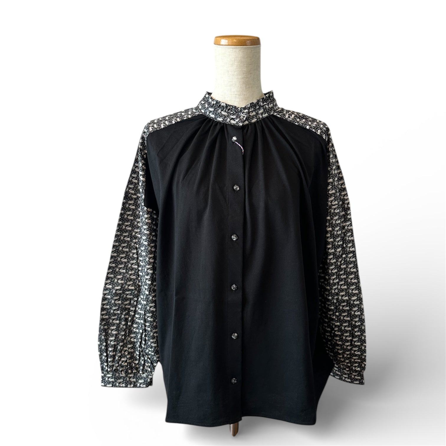 肩からお袖部分にはリバティタナローンプリントで布帛素材になります。